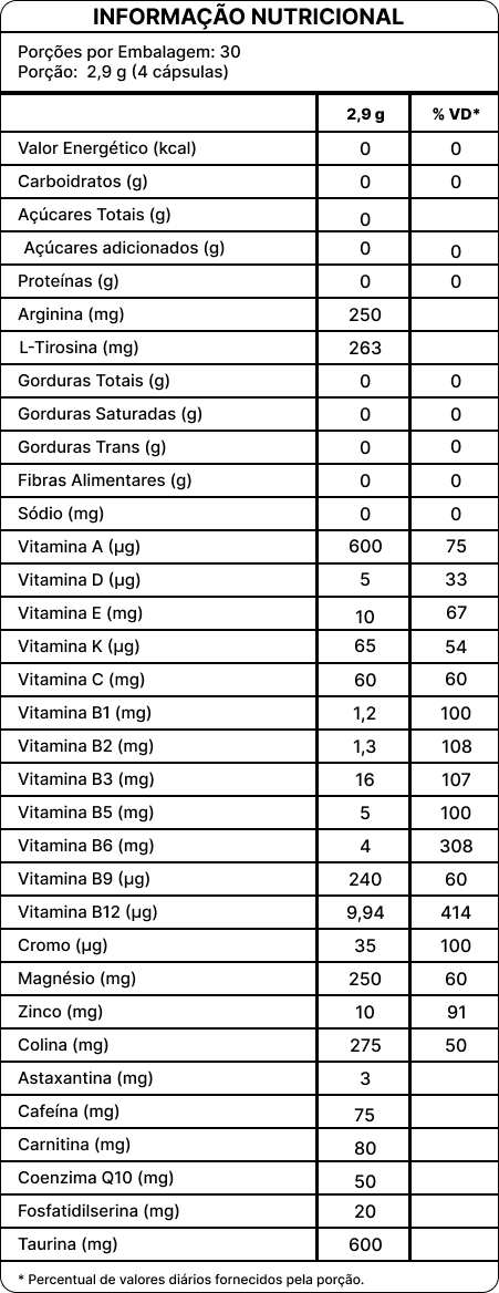 Combinando nutrientes que favorecem a atividade cerebral, este suplemento auxilia no aumento da atenção, da memória e da capacidade de raciocínio. Ideal para quem precisa de mais produtividade nos estudos, no trabalho ou em atividades que exigem alto desempenho mental, promove clareza, energia e equilíbrio para enfrentar os desafios do dia a dia.